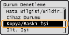 tuşlarını kullanarak <Kopya/Baskı İşi> seçeneğini seçin ve