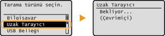 tuşlarını kullanarak <Uzak Tarayıcı> seçeneğini seçin ve