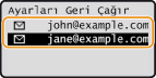 En son kullanılan üç hedef arasından bir hedef seçebilirsiniz. Önceden kullanılan bir hedefi belirttiğinizde makine, yoğunluk gibi en son o hedefe belgeleri gönderirken kullandığınız aynı tarama ayarlarını da yapar.