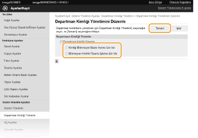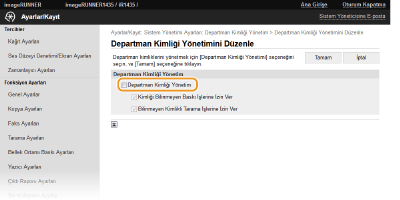 [Departman Kimliği Yönetimini Kullan] onay kutusunu seçin ve sağındaki [Ayarlar] öğesini tıklatın.