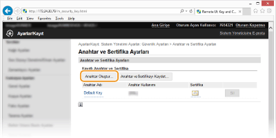 Bir anahtar çifti, [Anahtar Kullanımı] altında "TLS" veya "IEEE 802.1X" görüntülendiğinde olduğu gibi, geçerli olarak herhangi bir amaçla kullanılıyorsa silinemez. Bu durumda, anahtar çiftini silmeden önce işlevi devre dışı bırakın veya anahtar çiftini değiştirin.