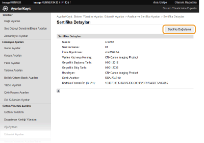 Bu ekranda sertifika ayrıntıları görüntülenebilir.
