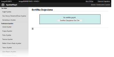 Sertifika doğrulamasının sonucu, aşağıda gösterildiği gibi görüntülenir.