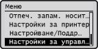 Всички настройки за управление на системата са поместени с кратки описания в списъка. Настройките по подразбиране са отбелязани с кръстче (