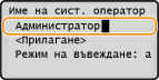 Въведете до 32 символа за име на системния оператор, изберете <Прилагане> и натиснете  . Въвеждане на текст