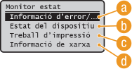 (Monitor estat), apareix una pantalla que permet comprovar l'estat dels documents que s'estan imprimint. També podeu verificar l'estat de l'equip, com el nivell de tòner, o la informació de les opcions de xarxa, com l'adreça IP de l'equip.