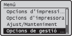 Es mostra una llista de totes les opcions d'administració del sistema amb descripcions breus. Les opcions predeterminades estan marcades amb una daga (