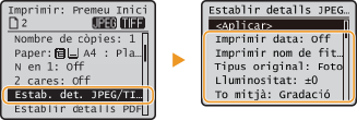 Per especificar les opcions d'impressió només per a fitxers JPEG/TIFF