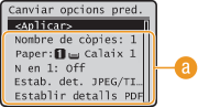 . Si canvieu aquestes opcions predeterminades perquè coincideixin amb les operacions que porteu a terme amb freqüència, podeu evitar la necessitat d'especificar les mateixes opcions cada cop que feu impressions.