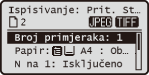 (Odabir/postavke papira), željeni papir odaberite na izborniku <Odabir papira>. Dodatno, pritiskom na ovu tipku možete promijeniti postavke papira kada želite uložiti papir drukčijeg formata ili tipa od prethodno korištenog papira. Imajte na umu da se postavka papira mora točno navesti radi pravilnog ulaganja papira.