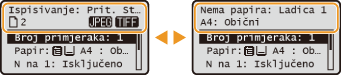 Poruke se prikazuju pri vrhu zaslona ako nema papira ili je razina tonera niska. Prikaz se mijenja iz prikaza običnog zaslona u prikaz poruke.