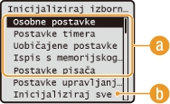 Za upute o tome kako vratiti postavke za <Mrežne postavke> i <Postavke upravljanja sustavom> pogledajte Inicijaliziranje postavki upravljanja sustavom.