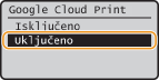 Ako želite onemogućiti funkciju Google Cloud Print, odaberite <Isključeno>.