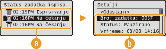 Da biste provjerili statuse ispisa|
