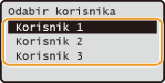 Ako se u memoriji nalaze zaštićeni dokumenti dvaju ili više korisnika, zaslon <Odabir korisnika> će se prikazati prije zaslona <Odabir datoteke>. Pomoću tipki