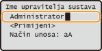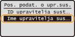 Unesite najviše 32 znaka za ime upravitelja sustava, odaberite <Primijeni> i pritisnite