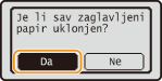 Ako se papir zaglavi, na zaslonu će se pojaviti poruka <Papir zaglavljen.>. Pritisnite
