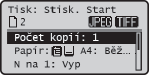 Na displeji se zobrazují obrazovky pro funkci tisku ze zařízení USB a její nastavení. Na displeji můžete rovněž kontrolovat informace týkající se chybových hlášení a provozního stavu.