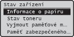 Ukazuje stav zařízení, jako je množství papíru nebo zbývající množství toneru.