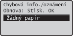 Hlášení se zobrazí v horní části obrazovky v takových situacích, kdy dojde papír nebo je nízká hladina toneru. Na displeji se střídá zobrazení normální obrazovky se zobrazením zprávy.