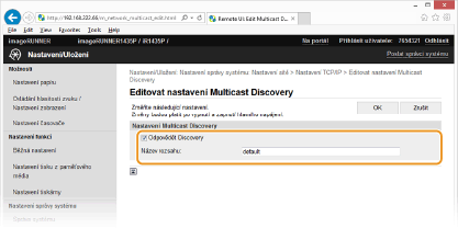 Klikněte na [Editovat...] v [Nastavení Multicast Discovery].