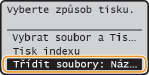 Vyberte <Třídit soubory> a stiskněte