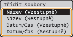 Když vyberete <Datum/Čas (Vzestupně)> nebo <Datum/Čas (Sestupně)>, soubory budou řazeny podle data a času úpravy souborů.