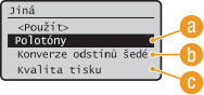 vyberte <Gradace> nebo <Difúze chyb> a stiskněte