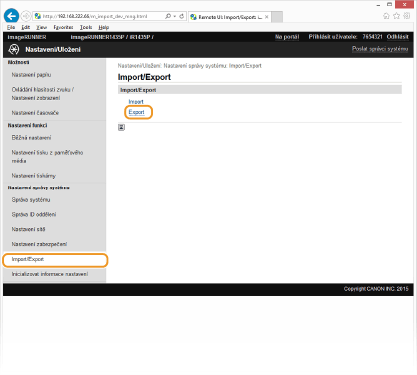 V průběhu procesu exportu zůstane zobrazena stejná obrazovka nebo se zobrazí hlášení s oznámením , že probíhá export. Ve vzdáleném uživatelském rozhraní neprovádějte žádné operace, dokud se nezobrazí hlášení s výzvou, abyste uložili exportovaný soubor.