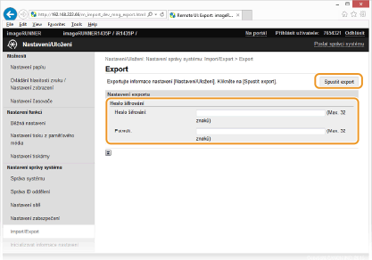 Zadejte heslo pro šifrování a klikněte na [Spustit export].