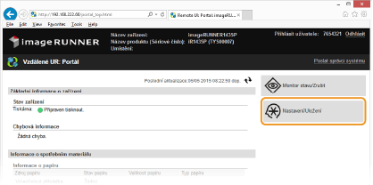 Spusťte vzdálené uživatelské rozhraní a přihlaste se v režimu správce systému.