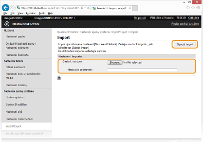 Zadejte nastavení pro import a klikněte na [Spustit import].