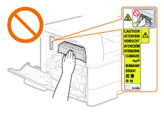 Vnitřek zařízení a výstupní přihrádka jsou během používání a bezprostředně po něm velmi horké. Abyste se nepopálili, nedotýkejte se těchto oblastí. Také potištěný papír může být ihned po výstupu horký, při manipulaci s ním tedy buďte opatrní. V opačném případě byste se mohli popálit.