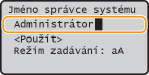 Zadejte jméno správce systému o maximální délce 32 znaků, vyberte <Použít> a stiskněte  . Zadávání textu