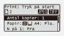 Displayet viser skærmene for USB-printfunktionen og dens indstillinger. Du kan også kontrollere oplysninger, som f.eks. fejlmeddelelser om driftsstatus på displayet.