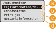 Viser statussen for maskinen, f.eks. hvor meget papir eller toner der er tilbage.