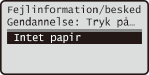 Når der opstår en fejl, vil der i visse tilfælde blive vist instruktionerne i, hvordan der skal reageres på fejlen. Følg anvisningerne på skærmen for at løse problemet. Den skærm, der vises, når der opstår et papirstop, er vist som eksempel herunder (