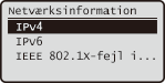 Viser netværksindstillinger som f.eks. maskinens IP-adresse.