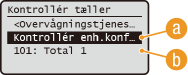 (Tællerkontrol), vises skærmen <Kontrollér tæller>. Fra denne skærm kan du se tællerværdien samt maskinens serienummer og konfigurationen.