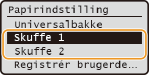 Vælg <Skuffe 1> eller <Skuffe 2>, og tryk på