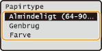 Hvis skærmbilledet <Vælg papir>, der ses nedenfor, vises, skal du bruge