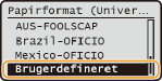 Ved ilægning af papir med brugerdefineret format