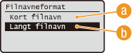 Vælg <Kort filnavn> eller <Langt filnavn>