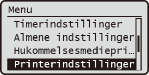 Alle indstillinger om printeren vises med korte beskrivelser. Standardindstillingerne er angivet med en daggert (