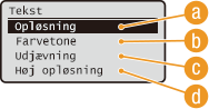 Indstillingerne, der er angivet for <Tæthed>, deaktiveres, når <Tonerbesparelse> aktiveres.