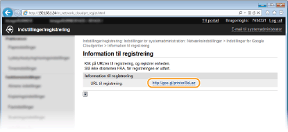 Klik på linket for den URL-adresse, der er vist for [URL til registrering:].