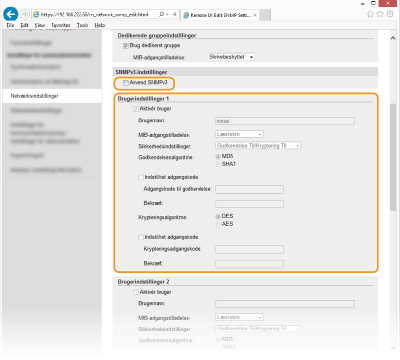 Marker afkrydsningsfeltet [Anvend SNMPv3].