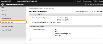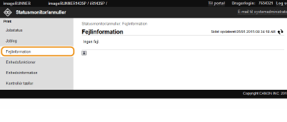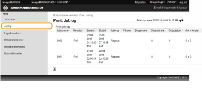 Når du logger på i systemadministratorstatus, vises alle de printdokumenter, der behandles i øjeblikket.