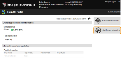 Klik på [Indstillinger/registrering].