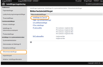 <Indstillinger for systemadministration> <Indstillinger for Fjern-UI> <Sik.indstilling. for adgang til Fjern-UI> <Til> Indtast PIN <Anvend> Indtast PIN (bekræft) <Anvend> .Hvis indstillingerne for Remote UI er initialiseretAdgangspinkoden for Remote UI initialiseres også. Nulstil pinkoden, når initialiseringen er færdig. Initialisering af menuer
